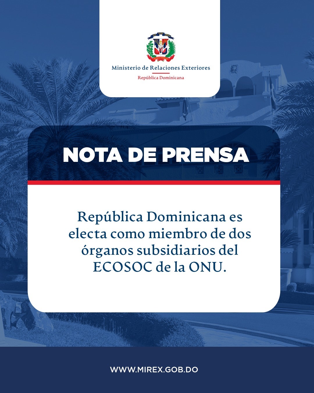 Santo Domingo de Guzmán, República Dominicana. – El Ministerio de Relaciones Exteriores (MIREX) en su calidad de presidente de la