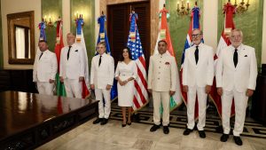 Santo Domingo de Guzmán, República Dominicana. – El presidente Luis Abinader, en compañía de la vicepresidenta Raquel Peña y el canciller Roberto Álvarez, recibió este miércoles las Cartas Credenciales de siete nuevos embajadores, quienes quedaron formalmente acreditados ante el Gobierno dominicano. Se trata de los nuevos representantes de la delegación de la Unión Europea, Raúl Fuentes Milani; Soberana y Militar Orden de Malta, Enrique Antonio Valdez Aguiar; República de la India, Kishan Dan Dewal; Estados Unidos de América, Leah Francis Campos; Reino