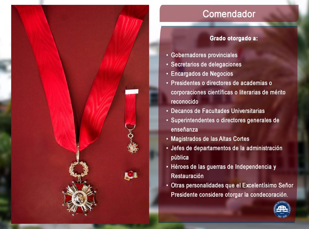La Orden Heráldica de Cristóbal Colón fue instituida mediante la Ley núm. 1352, de fecha 23 de julio del año 1937. La Referida Orden tiene por objetivo reconocer los hechos y trabajos meritorios, los servicios distinguidos a la Patria, a la humanidad y el mérito sobresaliente en las artes o en las ciencias.