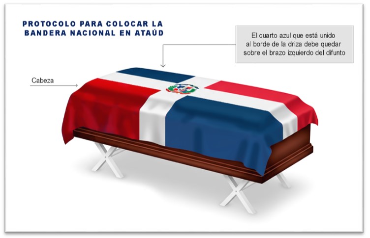 Colocación de la Bandera Nacional en ataúd. Se podrá cubrir el féretro con la Bandera Nacional como homenaje póstumo a ciudadanos que hayan ostentado importantes funciones públicas, se hayan destacado como munícipes, en las artes, la intelectualidad, la educación, la milicia, el patriotismo, la cultura, los deportes o la vida profesional en general, siempre que hayan observado una vida digna de tan elevado tributo póstumo.