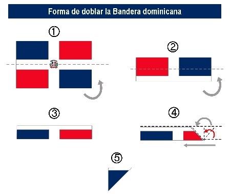 Cuando la Bandera Nacional sea doblada después de arriarse, se realizará de la manera siguiente: