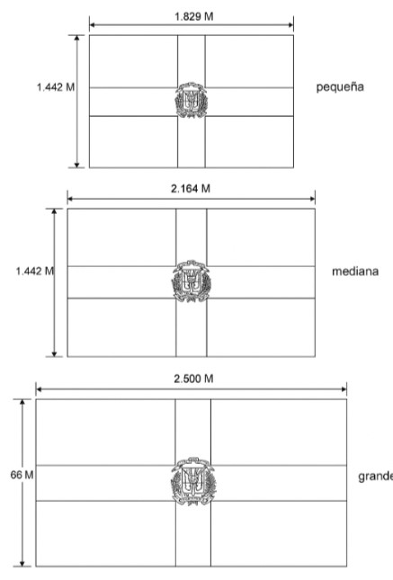 La Bandera Nacional de uso oficial puede ser de los tamaños siguientes: